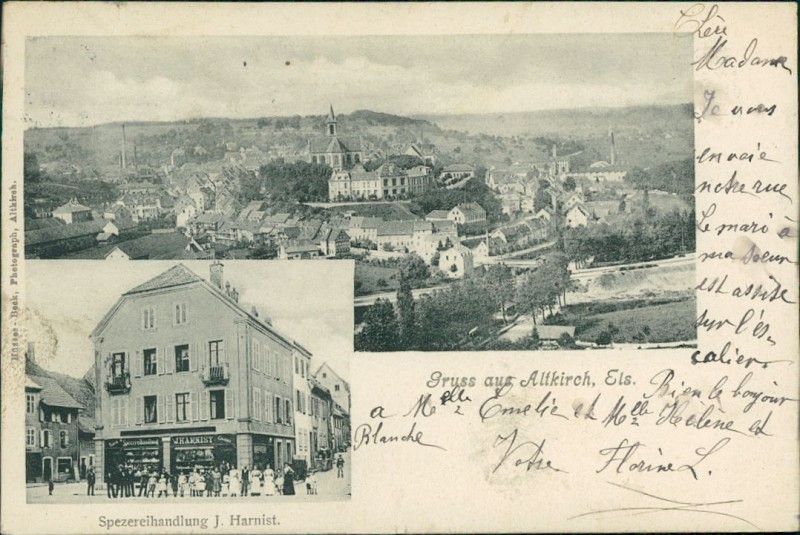 Alte Ansichtskarte aus Altkirch, gelaufen am 09.02.1905 von Altkirch (Oberels.) nach Paris.