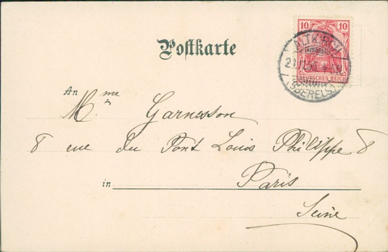 Alte Ansichtskarte aus Altkirch, gelaufen am 21.11.1905 von Altkirch (Oberels.) nach Paris.