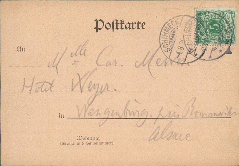 Alte Ansichtskarte aus Schirmeck-Vorbruck / Schirmeck-La Broque, gelaufen am 04.08.1898 von Schirmeck nach Wangenburg.