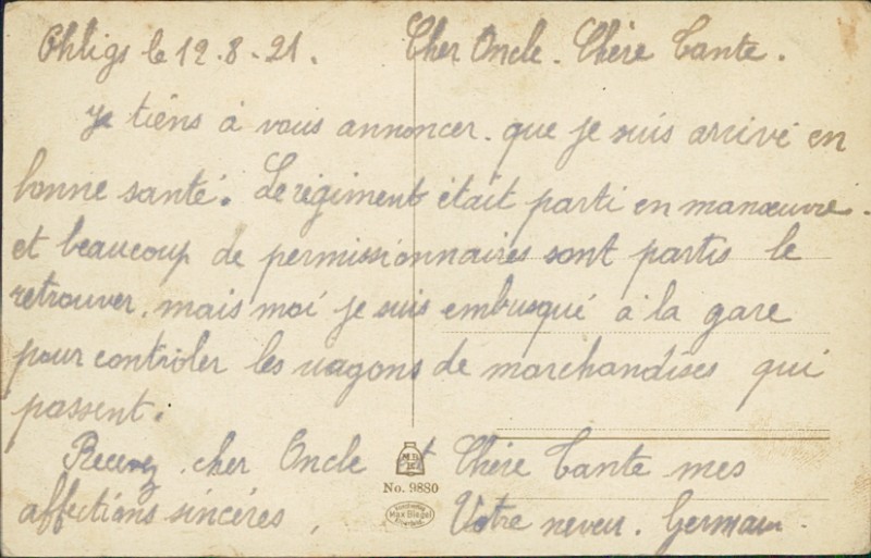Alte Ansichtskarte aus Solingen-Ohligs, beschrieben am 12.08.1921.