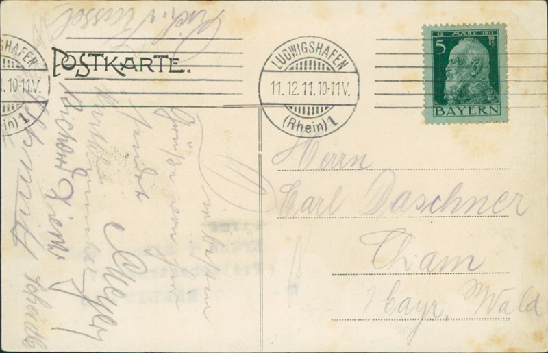Alte Ansichtskarte aus Ludwigshafen am Rhein, gelaufen am 11.12.1911.