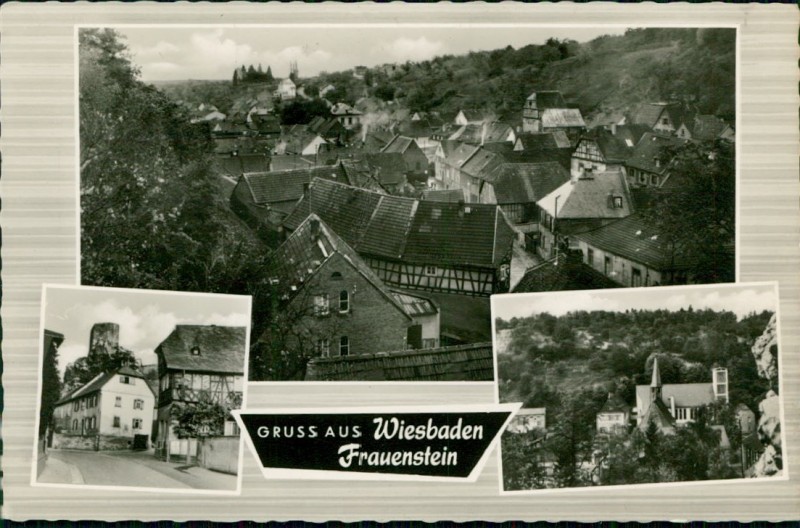 Alte Ansichtskarte aus Wiesbaden-Frauenstein, gelaufen um 1958.