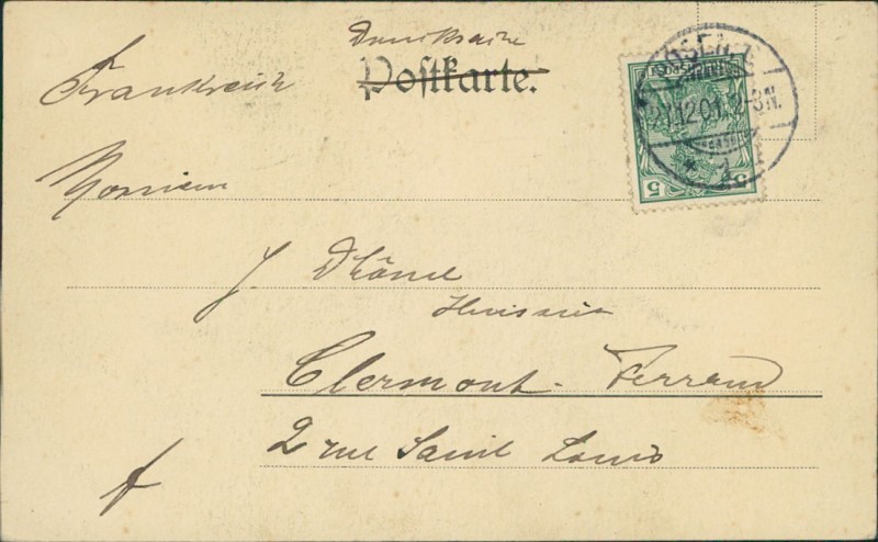 Alte Ansichtskarte aus Posen / Pozna, gelaufen am 27.12.1901 von Posen nach Clermont-Ferrand.