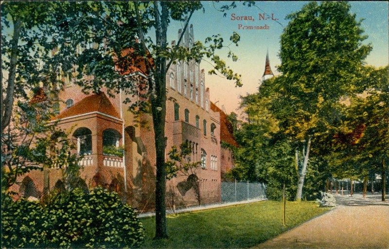 Alte Ansichtskarte aus Sorau / Żary, ungebraucht, gedruckt um 1916.