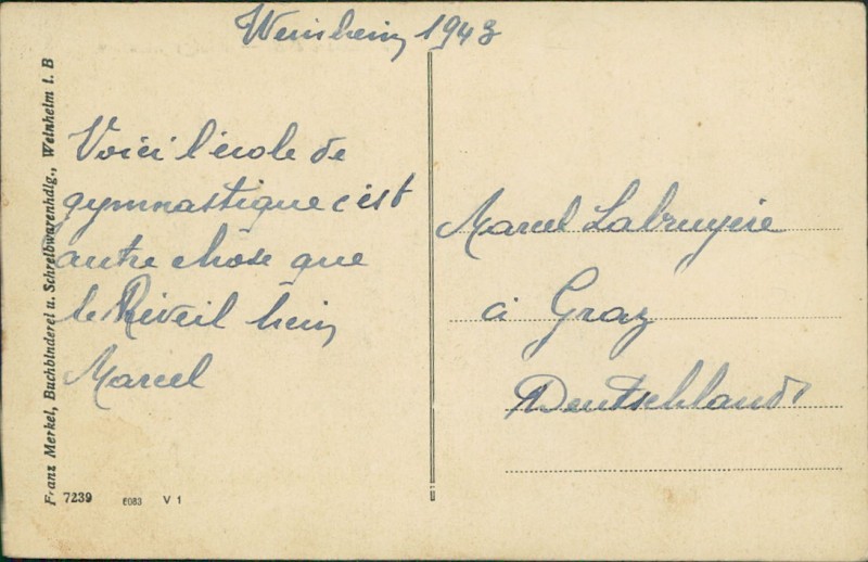 Alte Ansichtskarte aus Weinheim, beschrieben um 1943.