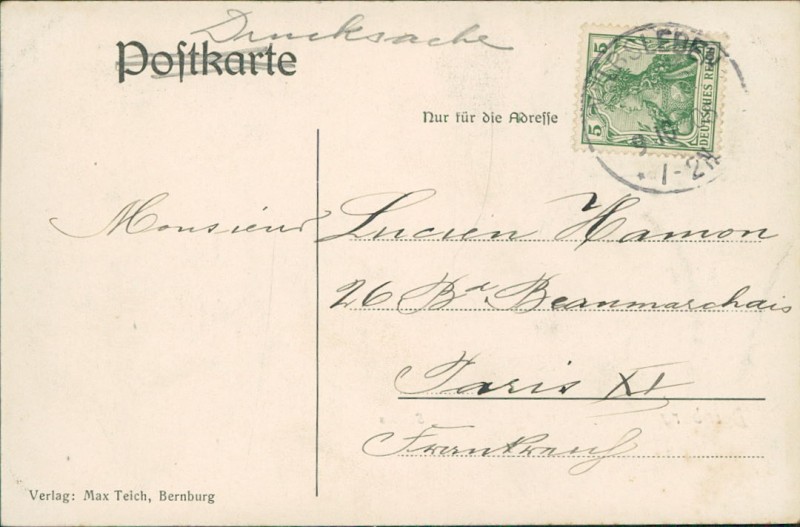 Alte Ansichtskarte aus Bernburg (Saale), gelaufen um 1908.