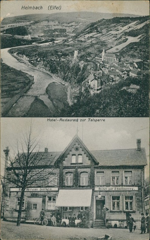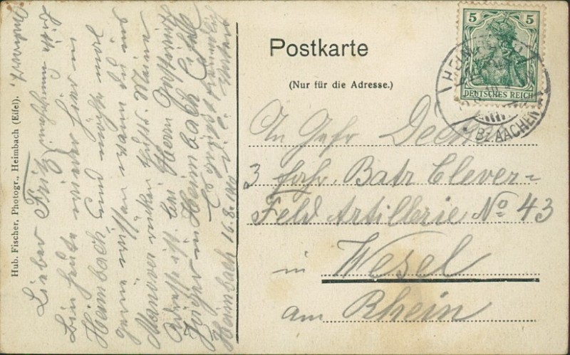 Alte Ansichtskarte aus Heimbach, gelaufen am 16.08.1910 von Heimberg (Bz. Aachen) nach Wesel.