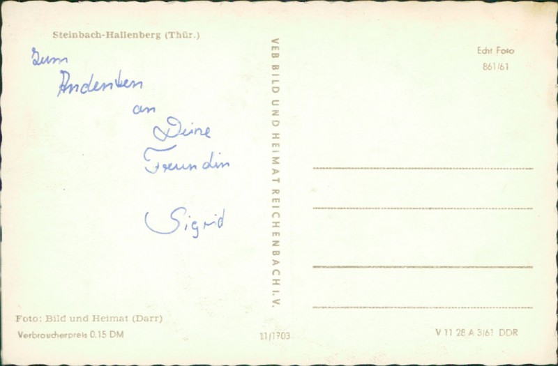 Alte Ansichtskarte aus Steinbach-Hallenberg, ungebraucht, gedruckt um 1961.