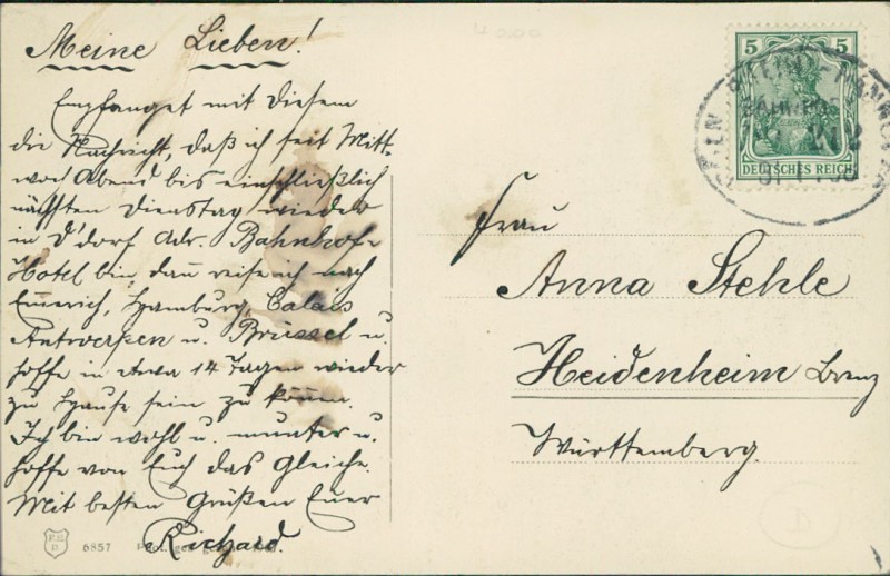 Alte Ansichtskarte aus Düsseldorf, gelaufen um 1908.