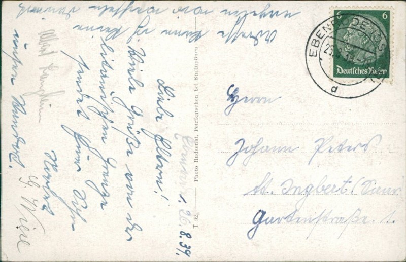 Alte Ansichtskarte aus Petrikatschen bei Stallupönen, gelaufen am 26.08.1939.