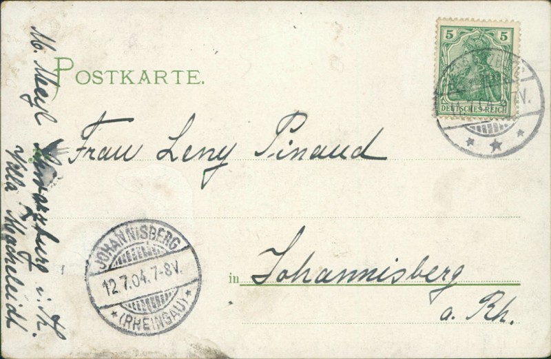 Alte Ansichtskarte aus Bergbahnregion/Schwarzatal, gelaufen am 11.07.1904 von Schwarzburg nach Johannisberg. Ankunft in Johannisberg am 12.07.1904.