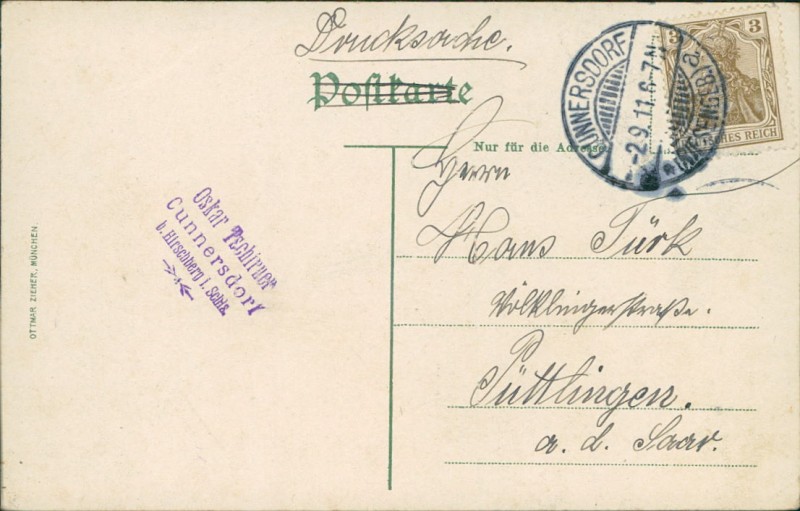 Alte Ansichtskarte aus Piechowice, gelaufen am 02.09.1911 von Cunnersdorf (Riesengeb.) nach Püttlingen.