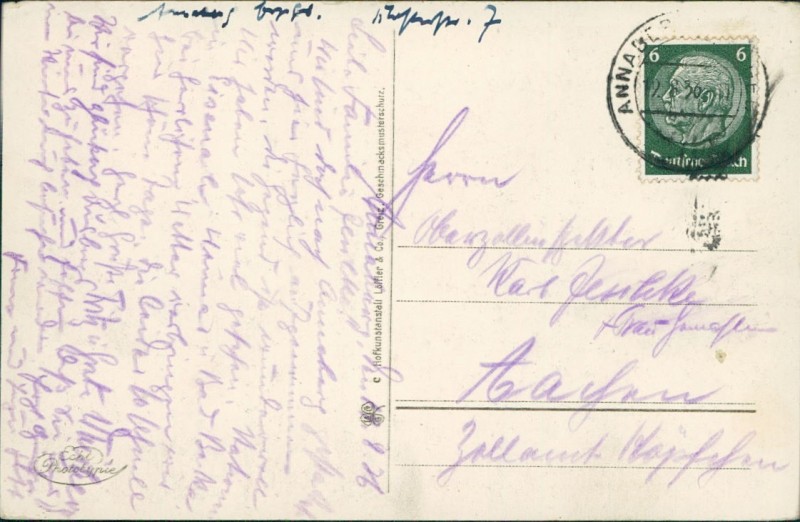 Alte Ansichtskarte aus Annaberg-Buchholz, gelaufen am 12.08.1936.