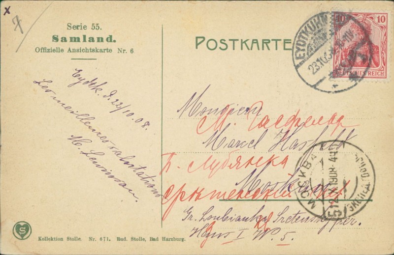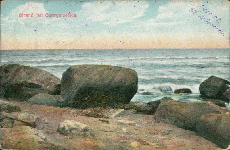 Alte Ansichtskarte aus Georgenwalde / Otradnoje, gelaufen am 23.10.1908 von Eydtkuhnen nach Moskau.