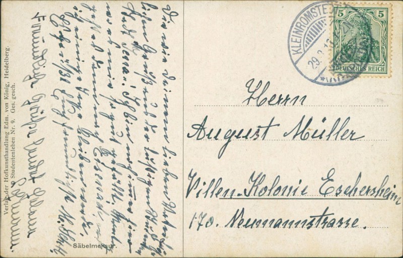 Alte Ansichtskarte, gelaufen am 29.03.1913 von Kleinromstedt nach Eschersheim.