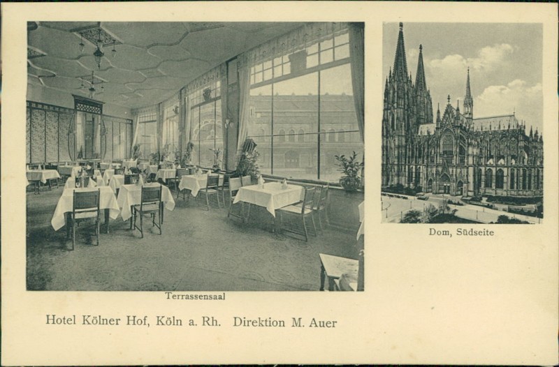 Hotel Kölner Hof, Direktion M. Auer, Terrassensaal. Dom, Südseite