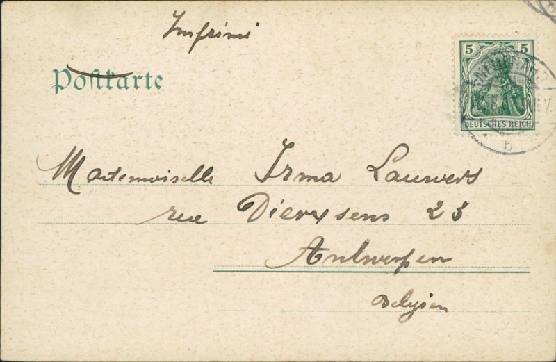 Alte Ansichtskarte aus Walporzheim-Marienthal, gelaufen am 22.08.1907 von Neuenahr nach Antwerpen.