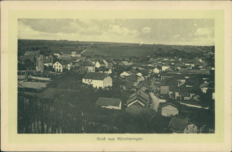 Alte Ansichtskarte aus Wincheringen, gelaufen am 14.08.1914.