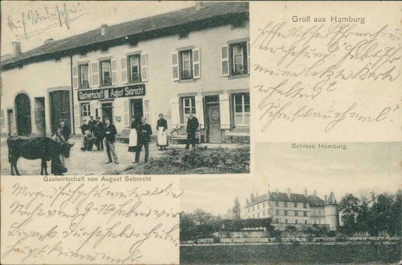 Alte Ansichtskarte aus Homburg-Bidingen / Hombourg-Budange, gelaufen am 09.09.1907 von Kedingen nach Freiburg i/Baden.