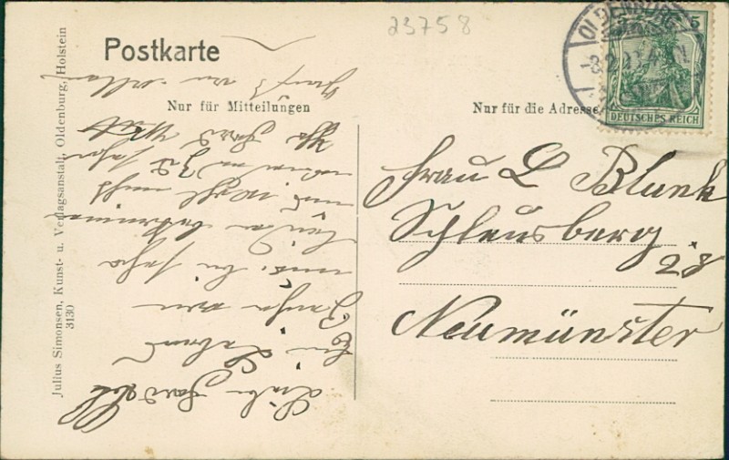 Alte Ansichtskarte aus Oldenburg in Holstein, gelaufen um 1908 von Oldenburg (Holstein) nach Neumünster.