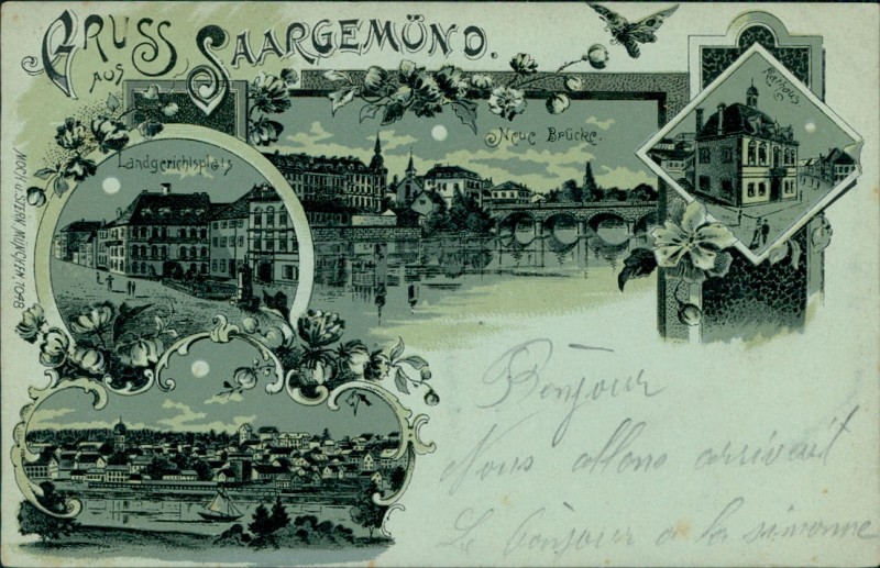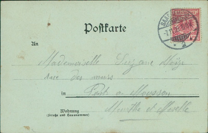 Alte Ansichtskarte aus Saargemünd / Sarreguemines, gelaufen am 07.11.1899 von Saargemünd nach Pont-à-Mousson.