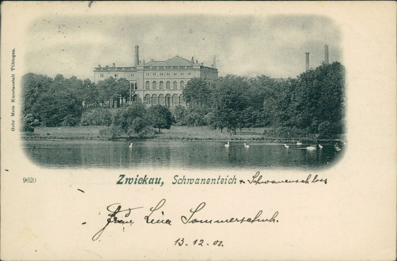 Alte Ansichtskarte aus Zwickau, gelaufen am 13.02.1901 von Zwickau (Sachsen) nach Paris.
