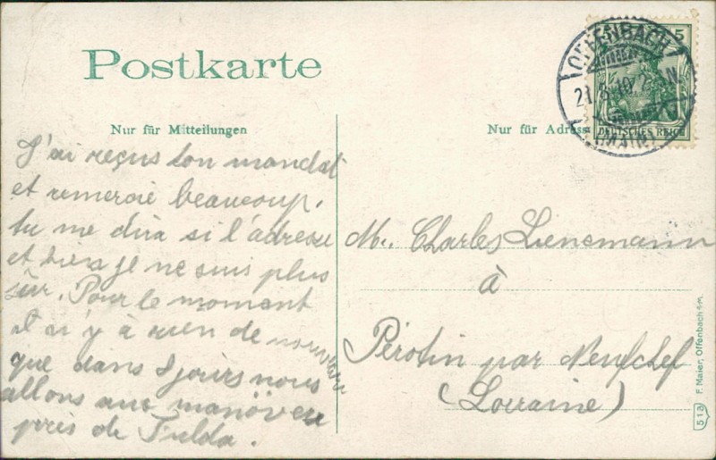 Alte Ansichtskarte aus Offenbach am Main, gelaufen am 21.08.1910.