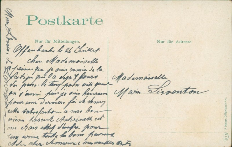 Alte Ansichtskarte aus Offenbach am Main, beschrieben um 1910.