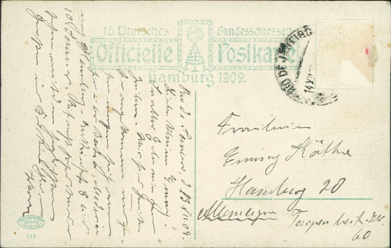 Alte Ansichtskarte aus Hamburg, gelaufen am 13.07.1909 von Hamburg nach Hamburg.