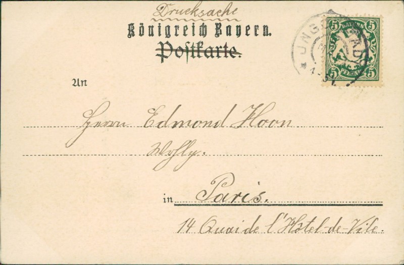 Alte Ansichtskarte aus Ingolstadt, gelaufen am 08.05.1900 von Ingolstadt nach Paris.