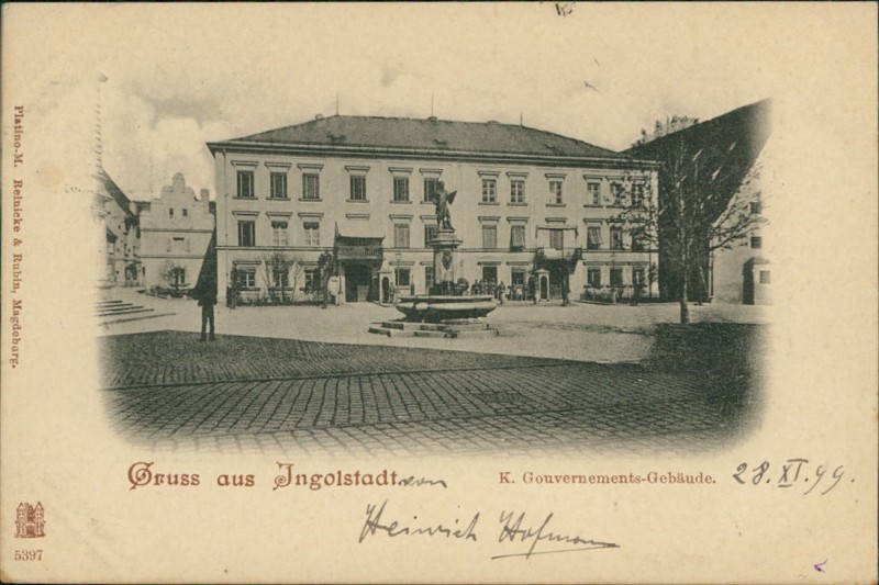 Alte Ansichtskarte aus Ingolstadt, gelaufen am 28.11.1899 von Ingolstadt nach Paris.