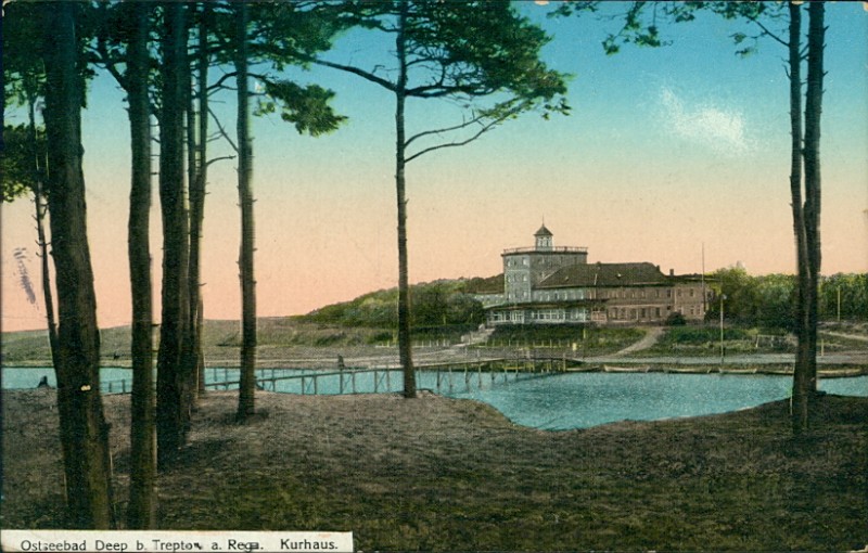 Alte Ansichtskarte aus Deep / Mrzeżyno, gelaufen am 16.06.1913 von Greifenberg (Pomm.) nach Stettin.