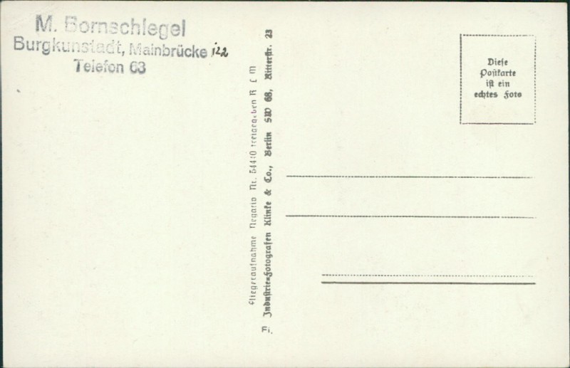 Alte Ansichtskarte aus Burgkunstadt, ungebraucht, gedruckt um 1938.