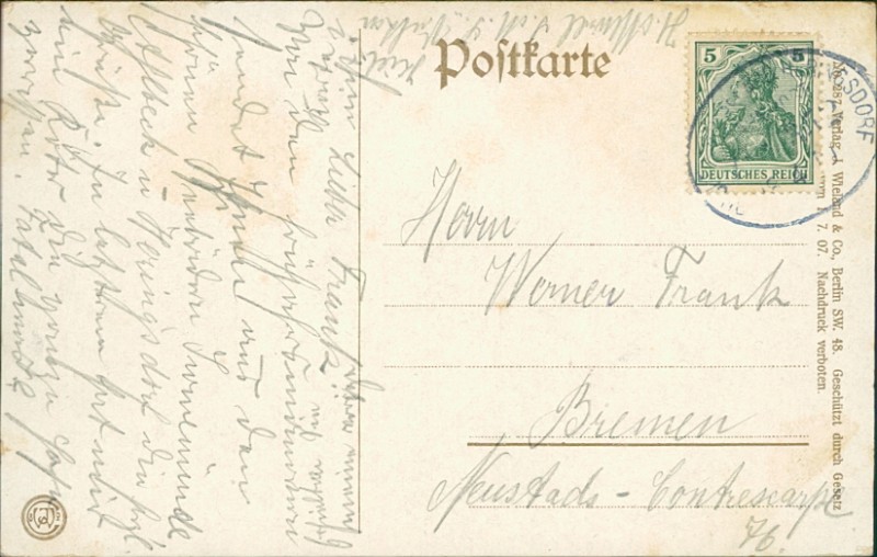 Alte Ansichtskarte aus Heringsdorf, gelaufen um 1907 von Heringsdorf (Bahnpost) nach Bremen.