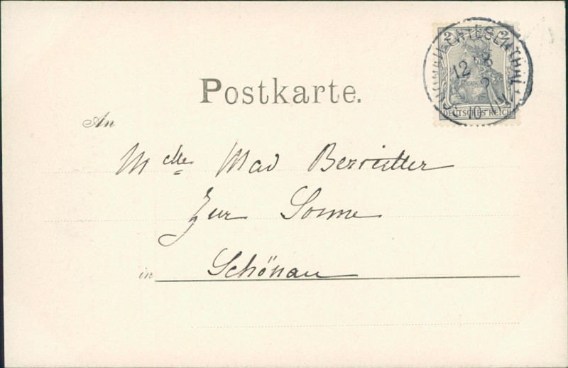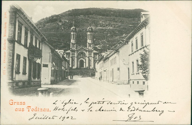 Alte Ansichtskarte aus Todtnau, gelaufen am 12.08.1902 von Schönau (Wiesenthal) nach Schönau.