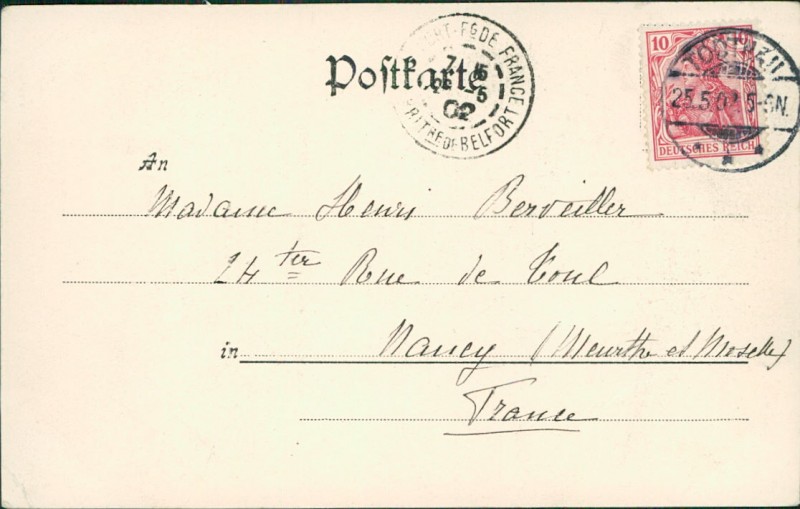 Alte Ansichtskarte aus Todtnau, gelaufen am 25.05.1902 von Todtnau nach Nancy.