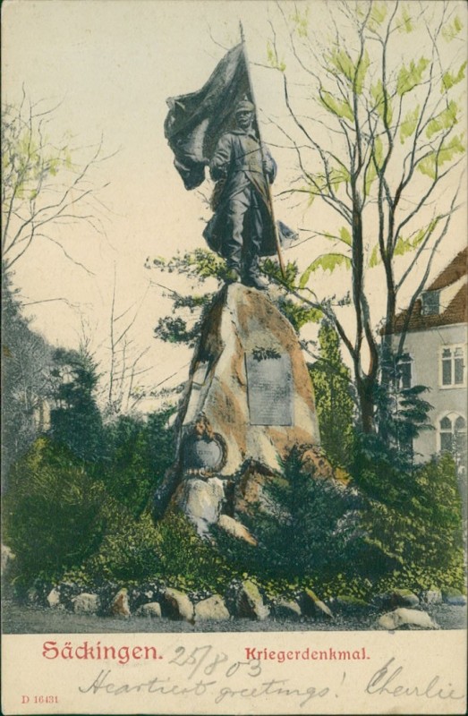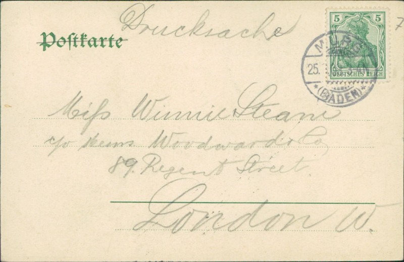 Alte Ansichtskarte aus Bad Säckingen, gelaufen am 25.08.1903 von Murg (Baden) nach London.