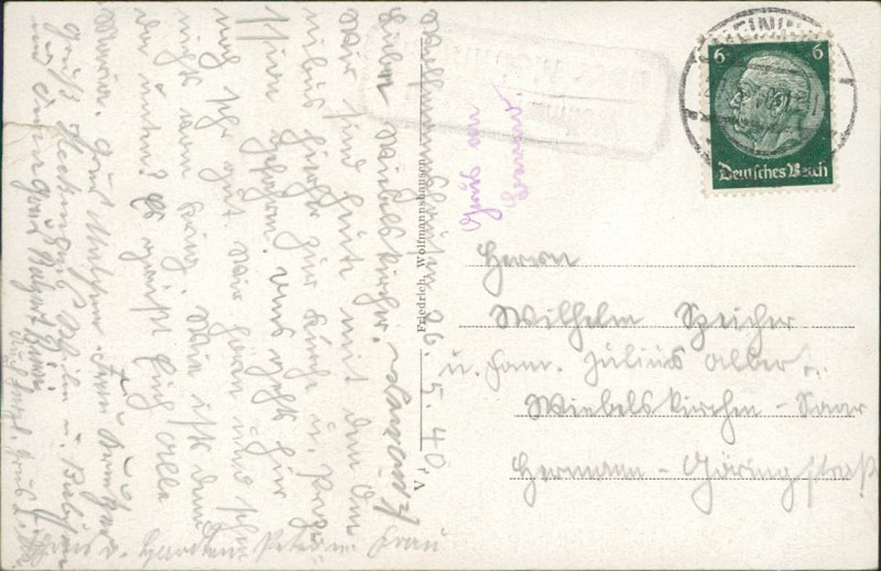 Alte Ansichtskarte aus Grabfeld-Wolfmannshausen, gelaufen am 27.05.1940.