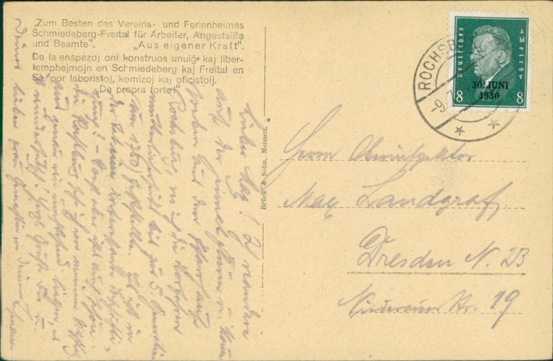 Alte Ansichtskarte aus Lunzenau-Rochsburg, gelaufen am 09.07.1930 von Rochsburg nach Dresden.