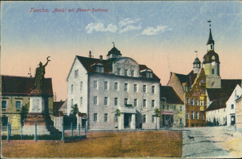 Alte Ansichtskarte aus Taucha, ungebraucht, gedruckt um 1918.