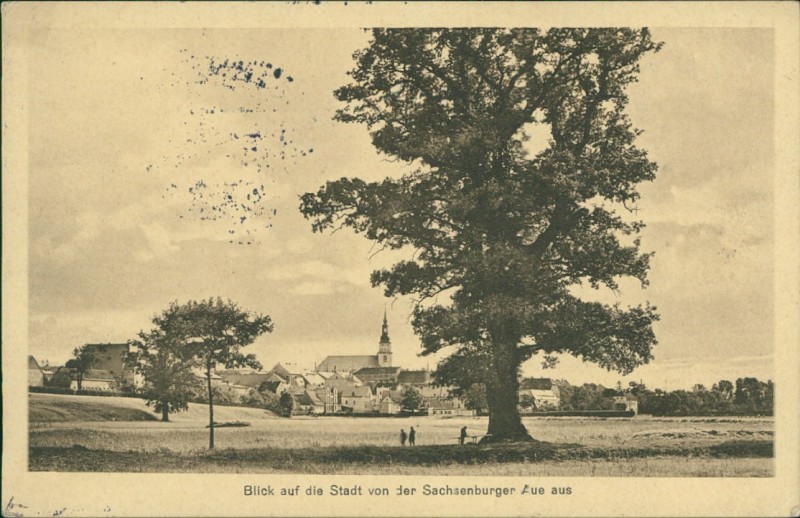 Blick auf die Stadt von der Sachsenburger Aue aus