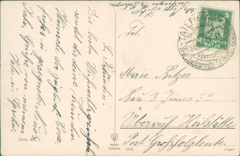 Alte Ansichtskarte, gelaufen am 24.12.1924.