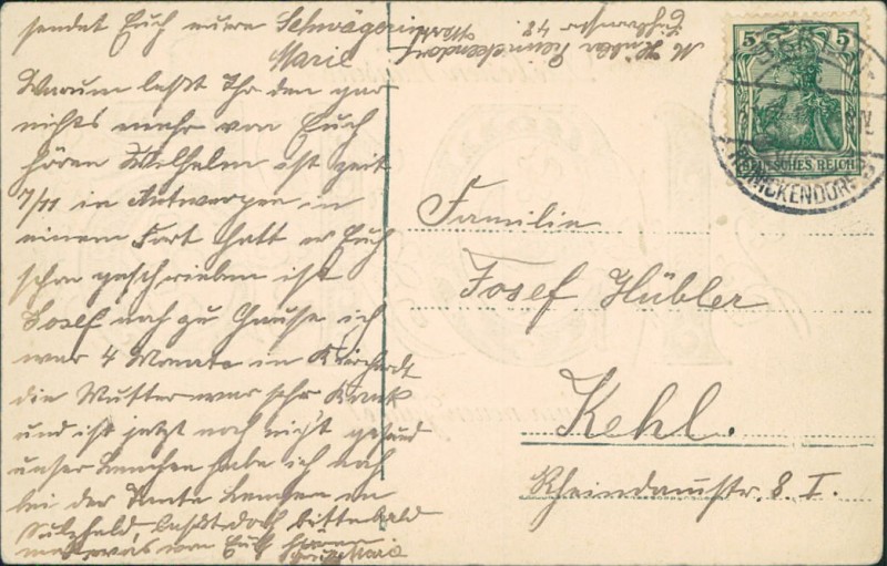 Alte Ansichtskarte, gelaufen um 1915 von Berlin Reinickendorf nach Kehl.