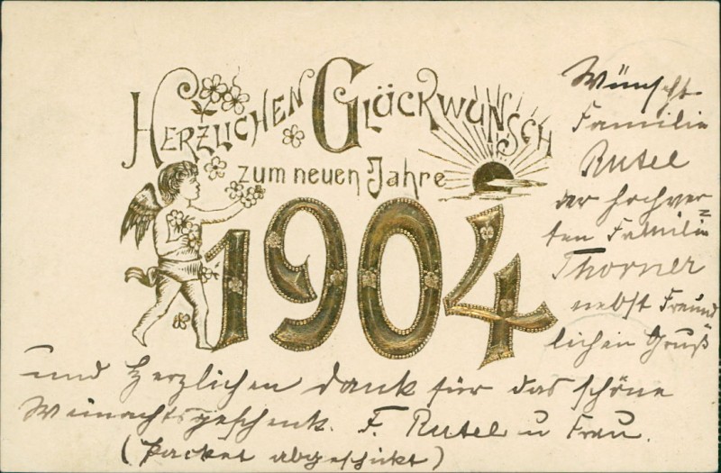 Jahreszahl "1904" in Golddruck, Engelchen