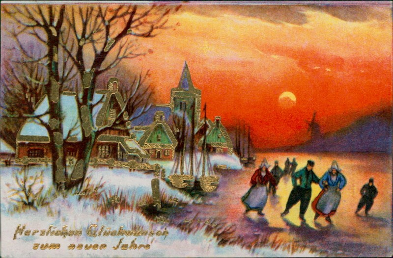 Winterlandschaft, Schlittschuhläufer, Windmühle