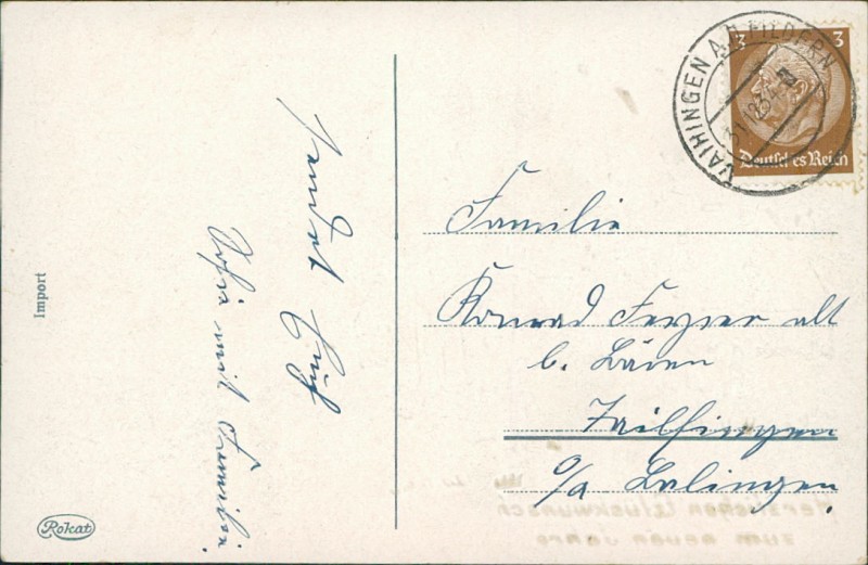 Alte Ansichtskarte, gelaufen am 31.12.1934 von Vaihingen a. d. Fildern nach Tailfingen.