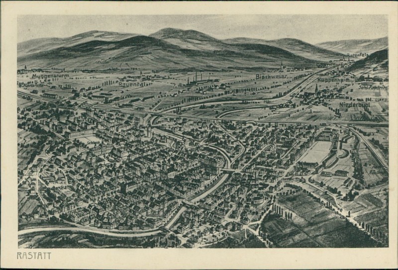 Alte Ansichtskarte aus Rastatt, beschrieben um 1919.