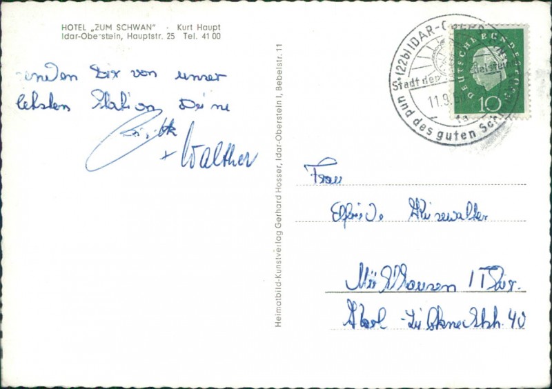 | Verlag | Heimatbild-Kunstverlag Gerhard Hosser, Idar-Oberstein I, Bebelstr. 11 |
