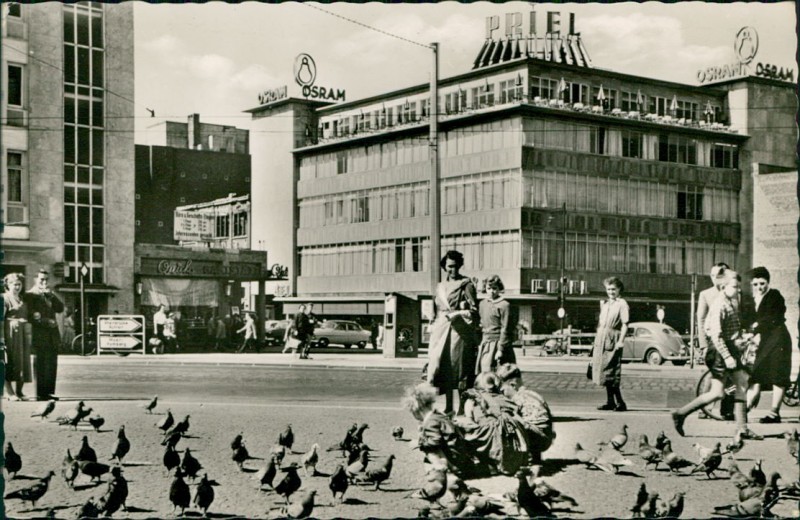 Alte Ansichtskarte aus Duisburg, gelaufen am 08.06.1957 von Duisburg nach Iphofen.