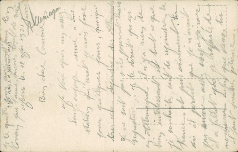 Alte Ansichtskarte aus Moers, beschrieben um 1921.